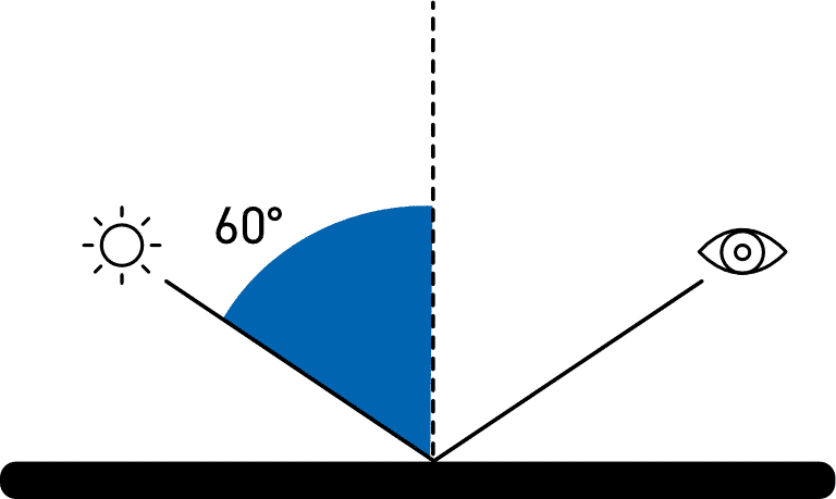所有光澤度均可使用 60° 標(biāo)準(zhǔn)測量角度進(jìn)行測量。這用作參考角度,互補(bǔ)角 85° 和 20° 通常分別用于低光澤度和高光澤度。