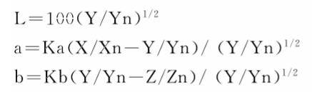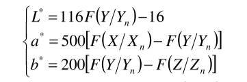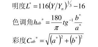 其中:L為明度;a、b為色度;X、Y、Z為物體的三刺激值;Xn、Yn、Zn為完全反射面的三刺激值;Ka、Kb為調(diào)整因子。