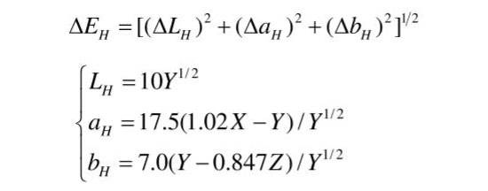 Hunter Lab色度參數(shù)技術(shù)公式如下: